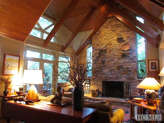 Beautiful 3 bedroom, 3.5 bath Jim Fox designed home, that has been completely updated. Gourmet kitchen, wood floors and stone fireplace floor to ceiling in living room. Relax on the screened porch overlooking Wildcat Cliffs'12th fairway and wonderful view of mountains in the distance. Two master suites, one on main and one upstairs with loft office. Wood work though out home is amazing. Great location in Wildcat Cliffs Country Club between Highlands and Cashiers.