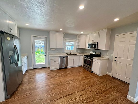 This charming single-family home located at 2130 Midway Drive Santa Rosa, CA 95403 contains 855 sq ft. As you enter the home you will find yourself in the living room which features a large window, recessed lighting & ceiling fan. Beyond this is an open concept kitchen which features stainless steel appliances (gas stove, dishwasher, microwave, & fridge), white cabinets, quartz countertops & recessed lighting. Down the hall you will find both bedrooms complete with ceiling fans and ample closet space. Adjacent to the bedrooms is the bathroom complete with a standing shower & vanity. The home includes a front and backyard for entertaining and conveniently located near HWY 12 and Montgomery Village. The home features hardwood floors throughout which have been refinished & new paint. 12 month lease. Sorry, no pets. Washer & dryer hook ups. Cosigners accepted. ( SO)
