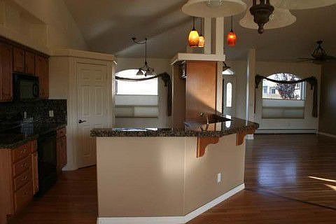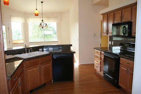 Huge lot that backs up to 9 acres of private open space Lime Kiln Creek Terrace backyard with mature trees shrubs of all kinds Huge covered patio with great views All hardwood floors throughout except baths Open concept with great views from kitchen living room Granite tile in kitchen Split bedroom floor plan Excellent street appeal with open front court yard Back covered patio looks into the Monument lots of wooded private open space