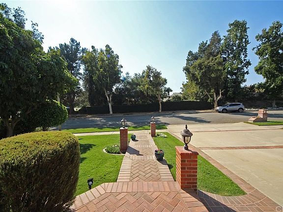 Gorgeous home in Upland is located in a wonderful neighborhood north of the 210 Freeway! Inviting curb appeal with an healthy lawn, bricked steps & covered porch entryway with sidelites & brick flooring. Enjoy an open floor plan with high ceilings, extensive use of plantation shutters and a main level bedroom ideal for guests or your office. Sunken formal living room offers ample wall space for artwork & mirrors. It opens to the spacious formal dining room perfect for fun dinner parties. In the kitchen you have granite counter tops, a built-in range, GE® oven & more. The breakfast bar opens to the informal dining area under a vaulted ceiling with a contemporary ceiling fan light. From here you are open to the family room with a custom media center, wine bottle storage, beautiful fireplace, wet bar and wood framed sliding door to the patio. There is a bedroom on this level, as well as a bathroom with a shower & doorway to the side patio. Double doors open to a gorgeous master suite with a sitting area, high vaulted ceiling & relaxing bathing quarters. Enjoy the soaking tub, separate shower, walk-in closet, double sinks and glam bar. Main level laundry room has a folding station & storage. The 3 car attached garage has space for a workshop area or more storage. Delightfully landscaped backyard has a mountain view, expansive brick & concrete patio for entertaining, lawn areas & plenty of space for dogs to run. If you are looking for an exceptional Upland home, this is the one!