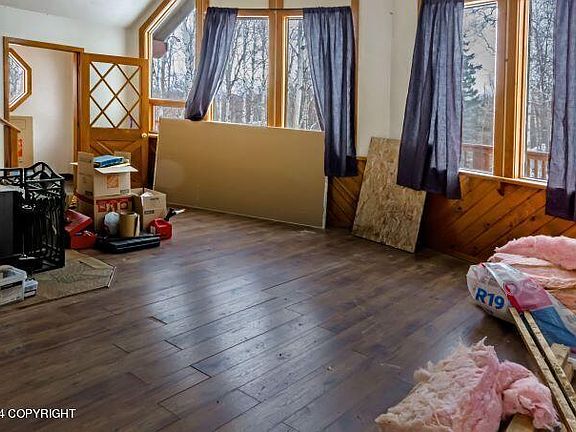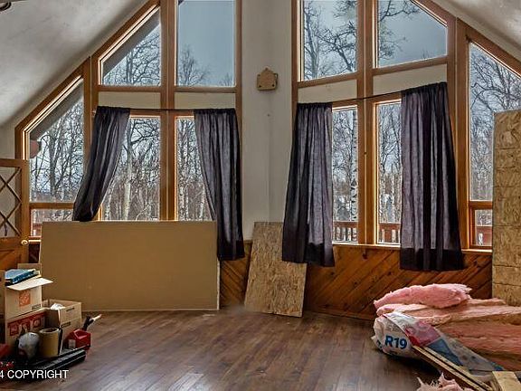 Beautiful Home looking for YOU! Classic chalet perched upon a hill - wrap around deck lets you enjoy the outdoors. Needs a full face lift but functional. Offering an incredible Wasilla location, large private lot, over 2000sqft of living space w/ vaulted ceilings, woodstove, etc. Large den downstairs w/ fireplace. Primary suite takes the top floor - a wonderful space w/ WIC. Private bath hastiled jetted tub & double sinks. Nice storage shed w/ covered space on both sides. This would be a great place to customize and enjoy! Don't miss out - Large home w/ Wasilla location - won't last long!