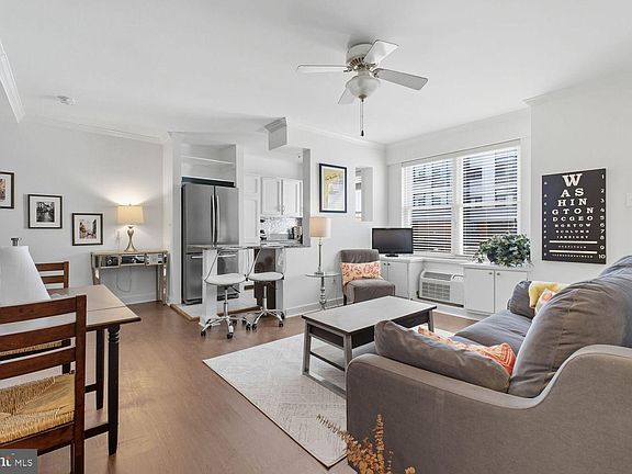 NEW to the market in Dupont Circle! This south-facing, freshly painted 2nd floor studio at Hastings Court is bright and cheerful, flooded with sunlight and ready for YOU. Whether you're looking for a pied-a-terre as an end user OR looking to make some money as an investor, this home offers incredible value! Thoughtfully laid out with an open floor plan, a generously sized family room with separate dining, a spacious kitchen with a south-facing picture window and flex spaces in the unit to make it your own too. Take advantage of the big, shared roof deck with incredible views of downtown DC, including the Cathedral...perfect to start your day off with a morning coffee or take in an afternoon beverage watching the sunset this fall. This sunny condo features HWF, a gas stove, built-in storage, a tub/shower in the bathroom and a full-sized Murphy bed. Condo fee includes water and gas, and the building is pet friendly! Hastings Court is a well-maintained boutique building with an inviting lobby, secure fob entry and new laundry facilities on the ground level. The elevator building also offers bike storage. Just blocks away from Whole Foods, Trader Joes, a neighborhood pool and all the fun restaurants and shops. The Dupont Circle (red line) Metro Station is an easy 7-minute stroll away, and the Foggy Bottom (blue, orange, and silver lines) Metro Station is just over 10 minutes away. Walk score: 95, Transit score: 92, Bike score: 94. Super convenient location!