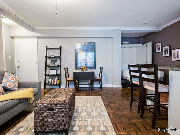 Available Jun 02, 2021. - This fully-furnished modern studio, 1 bathroom condo is on the second floor of a 5-story building on the convergence of Dupont Circle and the West End. The sunny unit features hardwood floors, built-in storage, granite and stainless steel appliances, a gas stove and microwave in the kitchen, a tub and shower in the bath, a queen-sized Murphy bed for added space, a card-operated laundry in the building, and in-wall air conditioning units. The building boosts a shared roof deck with great views of downtown DC. Restaurants, a Whole Foods Grocery Store, a Trader Joes, and shops are just blocks away. The Dupont Circle (red line) Metro Station is an easy 7-minute walk away, and the Foggy Bottom (blue, orange, and silver lines) Metro Station is just over 10 minutes away. Walk score: 95, Transit score: 92, Bike score: 94. Click here to inquire about our property availability