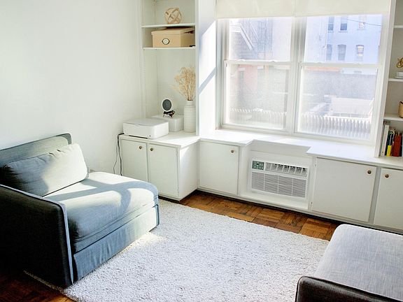 Among D.C.'s most coveted locations, the border of Dupont Circle & West End, steps away from Georgetown. Stunning, bright, and fully furnished studio with Murphy bed. Minimum lease: only three months. In these unprecedented times, premier supermarkets, pharmacies, gas stations, restaurants, and metro stations are all a 10-minute walk away: Trader Joe’s (10 min walk), Whole Foods (10 min walk), Streets Market (2 min walk), Walgreens (3 min walk), CVS (4 min walk), Exxon (4 min walk), Tatte Bakery & Cafe (3 min walk), Starbucks (4 min walk), District Taco (6 min walk), Foggy Bottom Metro (10 min walk), Dupont Circle Metro (10 min walk) [Google Maps]. Studio includes a breakfast nook with extra storage, two IKEA Vallentuna couches that convert into two twin beds for naps, breakfast bar with butcher block wood countertop, modernized central and kitchen lighting, hardwood floors, built-in bookshelf, and a new commercial kitchen faucet. Newly installed through-the-wall HVAC. Modern laundry room in the building, furnished rooftop deck with city views. Water & gas included, electricity & internet paid by tenant. Other nearby highlights: George Washington (GW) University Hospital (9 min walk), GW University (9 min walk), World Bank Group (16 min walk), U.S. Department of State (19 min walk), Founding Farmers DC restaurant (13 min walk), Chipotle (12 min walk), Apple Store Georgetown (20 min walk), Georgetown Cupcake (22 min walk).
