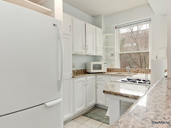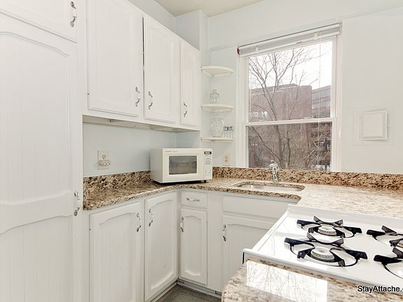 This fully-furnished modern studio, 1 bathroom condo is on the third floor of a 5-story building on the convergence of Dupont Circle and the West End. The sunny unit features hardwood floors, built-in storage, a gas stove and microwave in the kitchen, a tub and shower in the bath, a full-sized Murphy bed for added space, a card-operated laundry in the building, and in-wall air conditioning units. The building boasts a shared roof deck with great views of downtown DC. Restaurants, a Whole Foods Grocery Store, a Trader Joe's, and shops are just blocks away. The Dupont Circle (red line) Metro Station is an easy 7-minute walk away, and the Foggy Bottom (blue, orange, and silver lines) Metro Station is just over 10 minutes away. Walk score: 95, Transit score: 92, Bike score: 94.