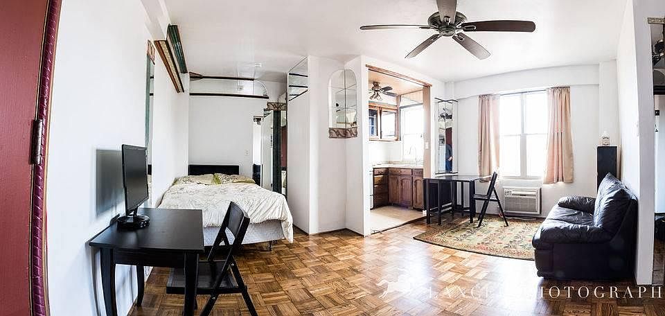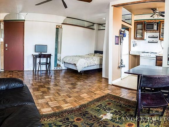 This furnished, sunny, upper-floor West End studio is in the center of everything, within easy walking distance ( 0.4mi) of Orange/Blue AND Red lines, Whole Foods/Trader Joes, downtown shopping and restaurants (Walk/Transit/Bike Score: 95/92/94). Features include new ceramic tile in the kitchen and freshly-renovated hardwood flooring, standing shower, in-wall AC/heat, and gas stove. Street-facing windows and the shared roof deck have spectacular views of the National Cathedral, while built-in cabinetry with mirror facings provide plenty of efficient storage and lots of natural light. Bike room available, small pets OK with fee. Gas, electric and water included in rent. Due to the current guidelines for COVID-19, virtual tours are available via Zoom. Owner pays for gas/electric/water. 6-month lease minimum. Furnished as shown.