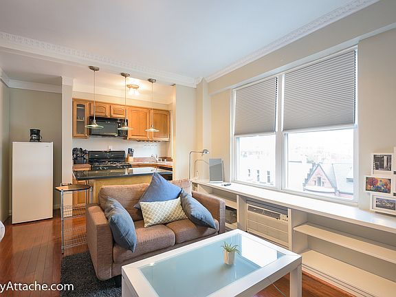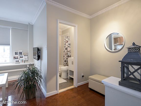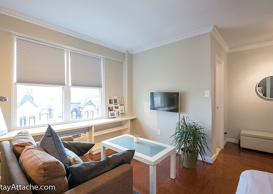 Available Jan 02, 2021. - This fully-furnished studio, 1 bathroom condo is on the top floor of a 5-story building on the convergence of Dupont Circle and the West End. The sunny unit features great city views of DC, hardwood floors, built-in storage, a gas stove and microwave in the kitchen, a tub and shower in the bath, a full-sized Murphy bed for added space, a card-operated laundry in the building, and in-wall air conditioning units. The building boosts a shared roof deck with great views of downtown DC. Restaurants, a Whole Foods Grocery Store, a Trader Joes, and shops are just blocks away. The Dupont Circle (red line) Metro Station is an easy 7-minute walk away, and the Foggy Bottom (blue, orange, and silver lines) Metro Station is just over 10 minutes away. Walk score: 95, Transit score: 92, Bike score: 94. Click here to inquire about our property availability