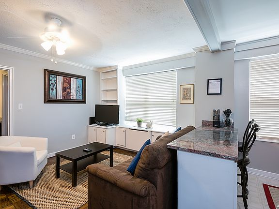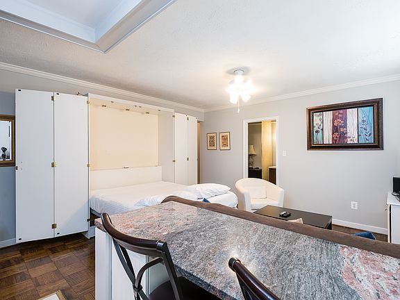 Tentatively available Aug 02, 2020. See website for details. - This fully-furnished studio, 1 bathroom condo is on the top floor of a 5-story building on the convergence of Dupont Circle and the West End. The sunny unit features hardwood floors, built-in storage, a gas stove and microwave in the remodeled kitchen, a tub and shower in the remodeled bath, a full-sized Murphy bed for added space, a card-operated laundry in the building, and in-wall air conditioning units. The building boosts a shared roof deck with great views of downtown DC. Restaurants, a Whole Foods Grocery Store, a Trader Joes, and shops are just blocks away. The Dupont Circle (red line) Metro Station is an easy 7-minute walk away, and the Foggy Bottom (blue, orange, and silver lines) Metro Station is just over 10 minutes away. Walk score: 95, Transit score: 92, Bike score: 94. Click here to inquire about our property availability