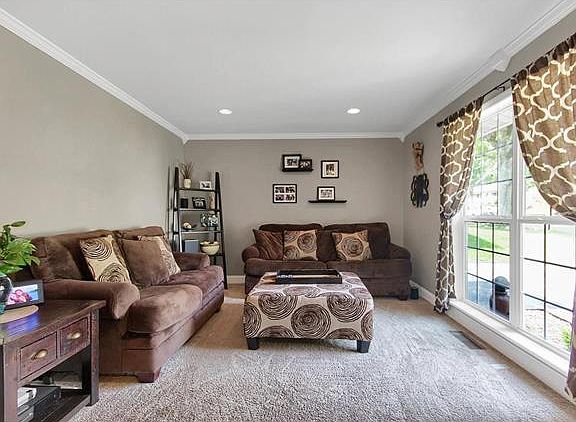 Charming 3Bd/2Bth on a tree-lined street w/private backyard! An inviting front porch welcomes you. Step into the foyer w/coat closet & wood lam flr wrapping around the hall & into the custom kitchen. The eat-in kitchen is loaded w/details! Featuring custom 30 & 42" oak cabinets w/under mount lighting along w/dimmable cans, SS dishwasher, micro, electric range, stone backsplash, walk-in pantry & built-in wine rack w/lighting! Relax in the adjoining fam room, featuring lrg windows, dim/recess lights & crown molding! 3 bedrms all w/hardwd fls, ceiling fan, & hrd-wired for wall mount T.V. w/hidden cable & boxes. The master bath has ceramic tile flr & shower, walnut vanity, & med cabinet. A 2nd ML full bath offers a tub/shower combo, ped sink, ceramic tile flr & tub surround. Extend living to the partially finished LL rec rm & sitting area w/ventless gas FP. Walk out to the level yard backing to com grnds/trees & unwind on the lrg deck! AAA Rockwood Schools, access to HWYS, shopping & more!