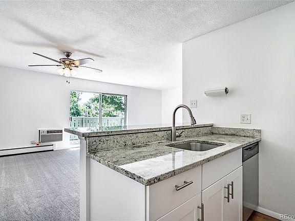 Beautifully updated condo backing to the Heather Ridge golf course. The fully remodeled kitchen boasts stainless steel appliances, granite counter tops and newer cabinets. The large bedroom features a walk in closet and a updated bathroom. Brand new carpet was installed last week. Secluded and quiet neighborhood with fast, easy access to I-225, light rail and RTD. Paired with a low HOA you do not want to miss out on this one!