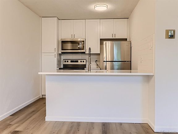 Welcome home to this beautifully renovated 1 bed 1 full bath condo at Brookshire Downs within the Heather Ridge Neighborhood and Cherry Creek School District. You will fall in love with all of the renovations including new cabinets, counter tops, backsplash and stainless steel appliances in the kitchen. New LVP flooring, new plumbing fixtures, new light fixtures, new interior doors, new door hardware, new carpet, new interior paint, new sliding back door, fully remodeled bathroom and new air-conditioning. Enjoy the view of Heather Ridge golf course from the back balcony.