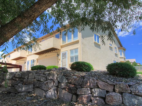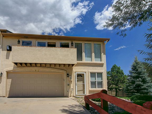 Best unit in the whole community!! Welcome Home to this beautiful 2-story townhome flooded with natural light and featuring incredible mountain and Pikes Peak views. Kitchen features a large center island with seating, cabinetry with 42" uppers, and hardwood floors. Elegant formal dining and great room with fireplace and vaulted ceilings provide excellent entertaining space. Walk-out to the front deck and enjoy those amazing mountain views and Colorado sunsets. Two upper level bedrooms and bathrooms, including the large master suite with bay window, walk-out to its own private deck and adjoining 5-pc bath with huge closet. The lower level is a perfect guest or entertaining space with a large rec room with wet bar, pantry and space for a game or dining table. Walk out from the seating area to a quiet private patio. Guests have their own bedroom and adjoining bath with walk-in closet. This end unit comes with an attached 2-car garage with opener, central air, and humidifier.