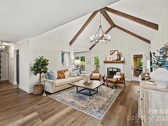 Introducing this absolutely stunning 3 bedroom, 2 bathroom ranch home with timeless and elegant improvements. Enter through the front door to a beautifully vaulted living room adorned with accent beams, wood burning fireplace and gorgeous lighting. The kitchen showcases a complete renovation with custom cabinetry, stainless steel appliances, and quartzite countertops. Custom millwork in the formal dining room elevates the space and direct access to the living room makes it perfect for hosting and entertaining. The tray ceiling and fabulously updated ensuite bath transforms the primary suite into a haven, tucked away from the main living spaces and secondary bedrooms. Utilize the all seasons room for versatile square footage - easily used as a home office or play room. With a fully fenced and private backyard, don’t miss the opportunity to make this stunning home yours! Every detail has been thoughtfully curated and meticulously maintained!