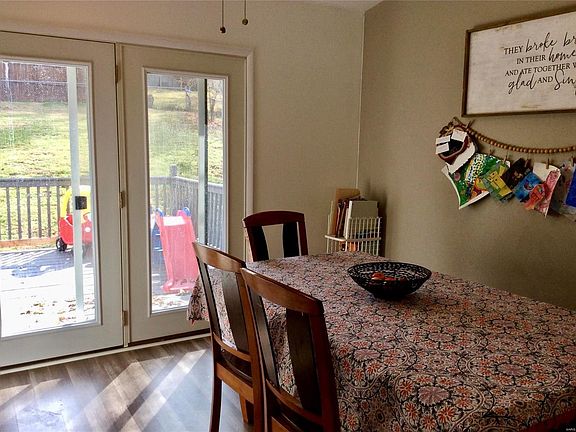 Welcome home to this adorable 3 bedroom, 2 bath home! Large and bright Living room leads to Dining room. Kitchen offers white cabinets with an antiqued finish and plenty of counter space. Kitchen and dining room boast newer flooring. Dining area leads to large patio overlooking a great fenced yard. Plenty of space for everyone! Lower level Family room has lots of light and features a brick fireplace, non-functional, with built in bookshelves on both sides. Lots of storage space in this home! Hot water heater is, approx., 3 years old. Subdivision has a clubhouse and pool. Easy access to Hwy M and I-55.