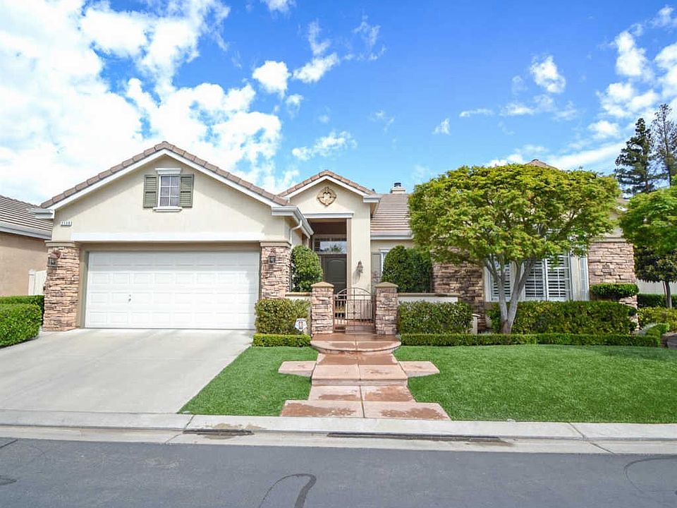 Beautifully updated home inside the exclusive gates of Fontana Delfino. You will love the open floor plan - perfect for everyday living & entertaining. The living area just off the kitchen features custom plantation shutters, decorative lighting, rich flooring, and beautiful fireplace. Exquisite kitchen w/center island offers plenty of custom features including stunning quartzite countertops, gas range, subzero refrigerator, dual Thermidor ovens w/ warmer, & abundance of custom cabinets. The spacious Master Suite flows into a bathroom of your dreams with large soaker tub & separate shower. 2 additional bedrooms with amble closet space & bathroom. Easy to maintain backyard with synthetic lawn, multiple patio areas, sparkling pool, and greenhouse. Prime NW location near Fig Garden Village. Exquisite home ready to move in to! Don't miss out on this wonderful opportunity!