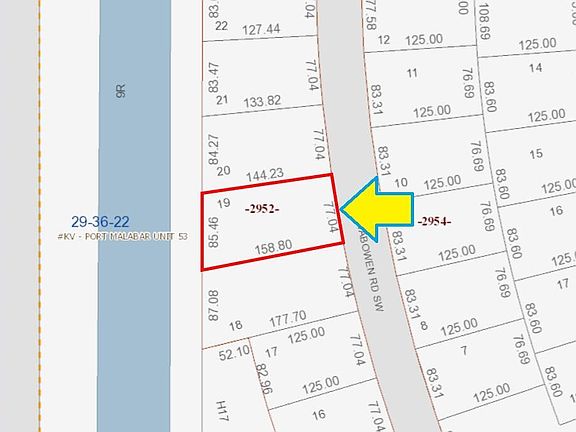 0.27 acre residential lot abutting a drainage right-of-way easement canal available in the rural Port Malabar Unit #53 of Palm Bay. Located in the SW Section near the Compound area, there is road access to the property; but there are no utilities present. So the lot is not buildable now or the foreseeable future. Investment property only! The owner has no knowledge of the property and makes no representation except for title. From exit #176 of I-95 go west on Palm Bay Road for .7 miles, left on Minton Road for 3.3 miles, right on Jupiter Boulevard, quick left on DeGroodt Road for 2.5 miles, right on J.A. Bombardier Boulevard for 2.7 miles, right on Kentucky Drive for .1 mile, and left on Wabowen Road. The lot will be on your left.