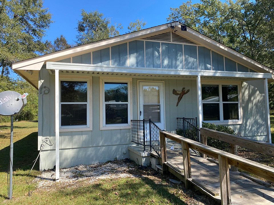 HOME and Full Garage wIth TWO covered cement pad awnings / In front of a stocked bass-Blue Gill Spring fed pond / Chicken Coup WITH 3 ACRES FOR RENT. Viewings by appointment only. The property is currently rented until the end of January 2025. Gated community. The home has a kitchen and dining room, two bedrooms, a full bathroom, utility/laundry room, sunroom/office, and screened in back porch. The house is equipped with an under the sink Reverse Osmosis drinking and cooking water filter system. The kitchen window, dining room window, office window, and bathroom have views of the lake. Residents will have access to the 1.28-acre spring feed bass pond. The home is well-insulated with the a newer roof for protection from storms. The garage and awnings have a cement floor, power and running water. A garden area and chicken coop have a water supply, and is located between the house and garage. Two vehicle parking shelter is located next to the driveway. Garden Area and blueberry bushes. On well water for greater purity. (No city water chemicals! Healthier for you, the plants and the chickens.) The rental contract is for 1 year or more at $1400 per month. $1000 security deposit. No pets other than chickens, ducks, or other outdoor birds. Well Water and sewer included in rent. The electricity is provided by Wiregrass Electric and averages between $120 - $200 depending on use. Garbage pickup is at $20 per month. Renter must provide their own renters insurance. A Zillow Rental application is available and required prior to showing the property. One year or longer lease required. Credit score of 675 or higher is required. No pets. $1400