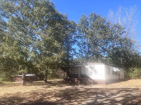 Beautiful acreage with mature trees. Two driveways. Home is a double wide, includes large shed too.
