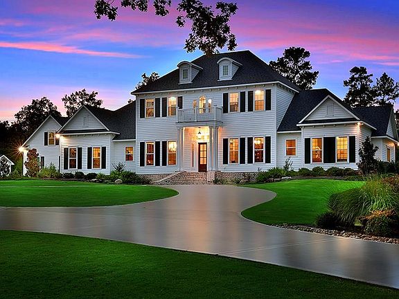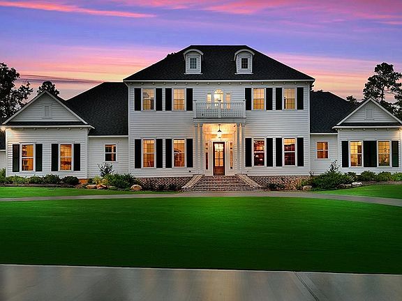 Stunning Colonial custom estate nestled on 31+ unrestricted acres-close to I-45, shops & dining! Private gated entry, impeccable attention to detail, soaring ceilings, abundant storage & panoramic windows provide natural light throughout! Large den with wet bar & brick fireplace is perfect for entertaining; both formals; study; island kitchen with Thermador appliances & huge pantry opens to breakfast room; master & 2nd bedroom down; 2 bedrooms, game room & flex rooms up; covered brick patio with summer kitchen & fireplace overlook acreage, pasture & pond!