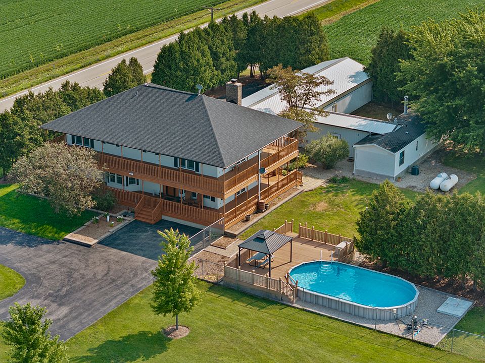 It has it all! LOCATION, annexed to Marengo,I90 access,future development with 40 ACRES~3,500 sq. ft 2 story home, completely REBUILT 1996 w/crawl space ( tho original 1900 basement)~remodeled kitchen and baths in 2017~4 car garage, W/attached 24'X36' BONUS ROOM w/ fireplace,kitchen, 1/2 bath, attached mobile home w/bedroom, primarily storage~30'x 60' POLE BARN~18'x33' above ground POOL w/deck~pond~approx. 31.5 acres RENTED~sign INCOME~permanent EASEMENT for towers~ Truly UNIQUE PROPERTY!! Too many details, must see! (example, wraparound porch~chefs dream kitchen~HUGE rooms~ heated WHIRLPOOL tub~whole house GENERATOR~2023 ROOF, etc)!
