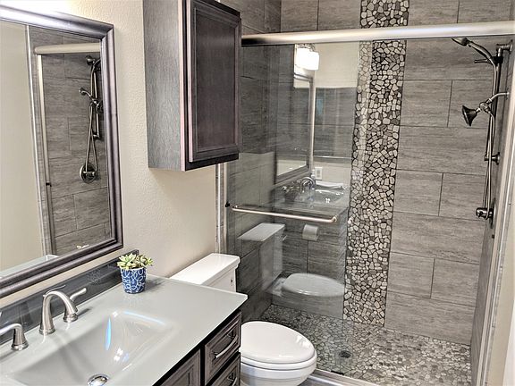 - RoomBathroomFeatures: Low Flow Toilet(s), Shower in Tub, Bathtub, Shower, Remodeled, Upgraded, Walk-in shower, Exhaust fan(s), Vanity area, Low Flow Shower, Dual shower heads (or Multiple)