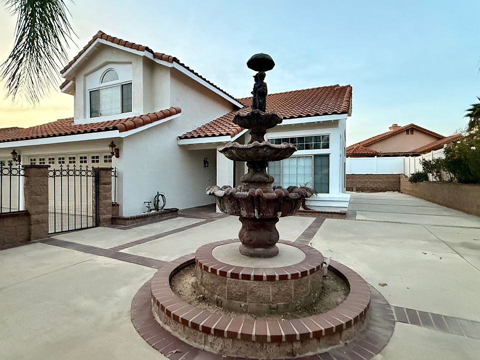Appliances such as a refrigerator, washer, dryer, range with microwave, and dishwasher are included. Additional benefits include a three-car garage and proximity to parks, schools, shopping, and commuter routes. Home with fresh paint all bathrooms, living room & dining room & bedrooms. Granite countertops kitchen with portable central island, formal dining room, downstairs bedroom with full bath, a huge balcony off the master bedroom, large storage area under staircase at first floor, brand new SPC Luxury Vinyl Plank & tile flooring, ceiling fans, fireplace, Laundry w/d in unit with washer and dryer. RV parking at the side of the oversized driveway, the rear yard has been cemented and has a block retaining wall all around it, the front yard has block wall with iron fence wraps around as well as tall water fountain features. There are also new vinyl fences at the back and side yards, which are about 1-2 years old. Near Box Spring Mountain & Sycamore Canyon Trail,UCR, MV Shopping Center, and More!