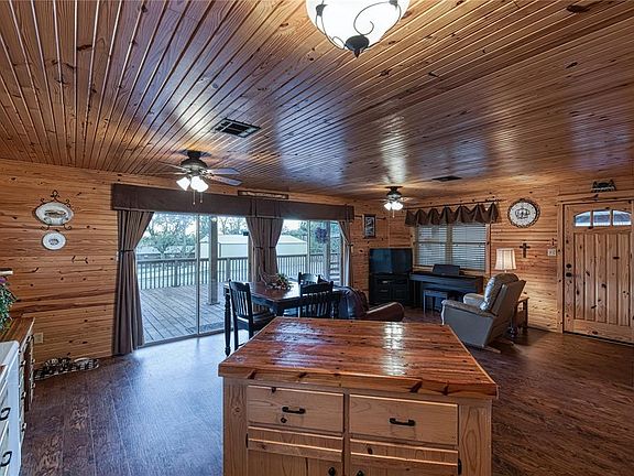 Welcome to your lakeside retreat! This charming property is a true gem, offering an opportunity to embrace the laid-back lake life. With water views of Foss Lake, a wrap-around deck that beckons you to relax, and even deer peacefully bedding down in the front lawn, this place is perfect for nature lovers. The interior of this home is a showcase of rustic elegance, with beautiful pine wood walls and ceilings. Every inch of this layout has been thoughtfully designed to maximize functionality and comfort, ensuring that you make the most of your time here. Situated on three lots, this property offers more than just a cozy home. You'll find a well-insulated workshop with electricity, perfect for your DIY projects or boat storage. Additionally, there's a south building on a concrete floor with its own electrical setup. The north lot boasts a covered parking area, ideal for safeguarding your boats or recreational vehicles. You also have your own priavat wate well here as well as a storm shelter. Don't let this opportunity slip through your fingers – properties like this one are in high demand, and they don't stay on the market for long.