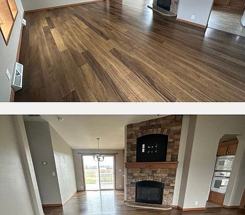 This is a one story ranch style home. This home has 3 beds and 2 full baths with a 2 car garage. There are 2 decks on the front and back of the home with a concrete pad in the back yard. A newly added privacy fence all around the back yard, and the living room has an electric fire place.