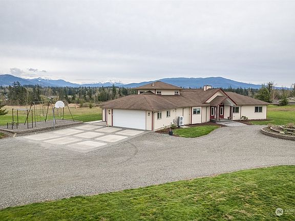 Custom designed home captures views of Mt. Baker & Twin Sisters. Magnificent one level, 3 bdrm, 2.5 bath home w/ attention to details & quality finishes, award winning builder’s personal home. Alder wood cabinets, granite counter tops, hardwood floors & vaulted ceilings create a well lit space. Picture windows offer mountain views. Kitchen w/ large island, floor to ceiling pantry, large counters. Other features are gallery/bonus room, double-sided gas FP, upper rec room w/ panoramic mountain views. Spacious 3 car garage has electric car plug in & office. Commercial grade insulated 42x60 shop w/ RV space & septic h/up, office & half bath. 2-12x14 doors/1-12x12. Buyer to verify zoning for potential business. Private oasis, 15 mins to B’ham.