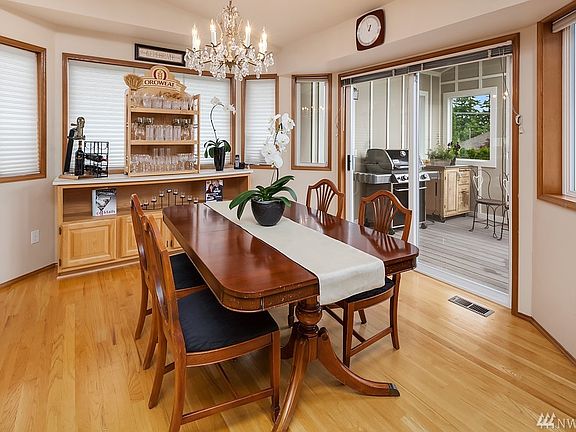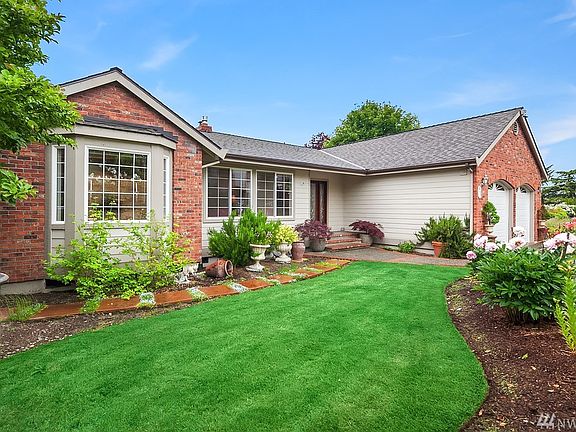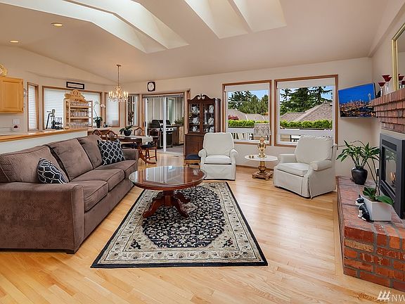 Sun-filled, gorgeous daylight rambler on a quiet dead-end street, steps to award schools. Spacious open floor design, practical & functional w/vaulted ceilings, tons of light from 4 large skylights, gleaming hardwoods, gas fireplace and direct access to a huge deck overlooking the private backyard - perfect for entertaining. Formal living & dining rooms. Master w/5-piece bath on main. 2nd family+bonus rms in daylight basement. Easy access to Boeing, beach & shopping. The good life starts here!