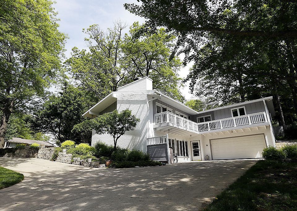 This 1958 Mid-Century Modern home features a solid pre-stressed concrete foundation and upper level, large great room and open kitchen space, wood-burning fireplace upper and Vernon Castings wood stove lower.