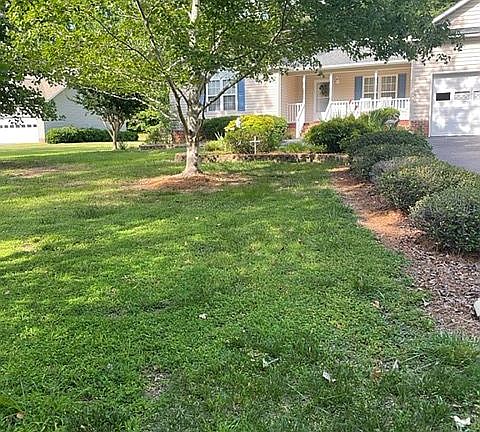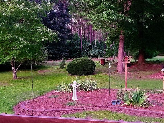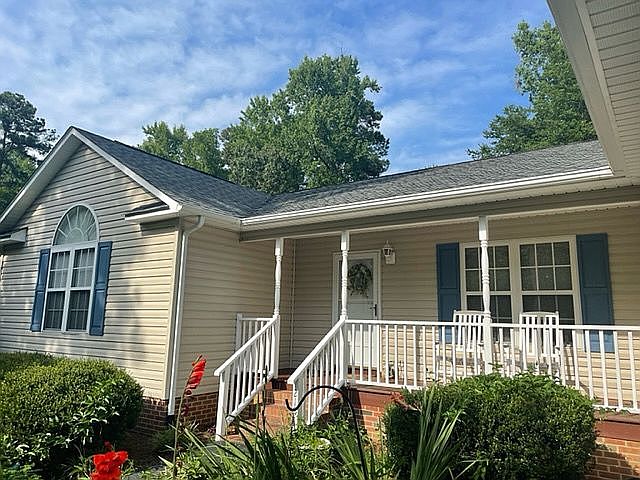 Large private lot, 3 Bedroom 2 bath home located in Private Gated Community of Carolina Trace! Open floor plan. Cathedral ceilings in Living Room, Master bedroom and 2nd Bedroom. Large walk in closets thru out. Paved walkway and driveway. New 20 year architectural shingles with warranty. Kitchen opens to a large living room with plenty of natural light and back deck. Large private back yard. Located walking distance from the pool or a short golf cart ride to the marina. Where you can store your boat or kayak and begin enjoying lake life at trace. Community also features two spectacular golf courses by Robert Trent SR. and a lovely country club where you can grab a drink and have lunch or dinner with your family.