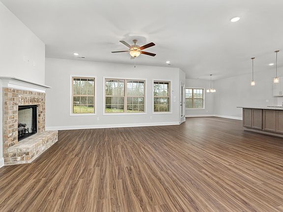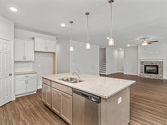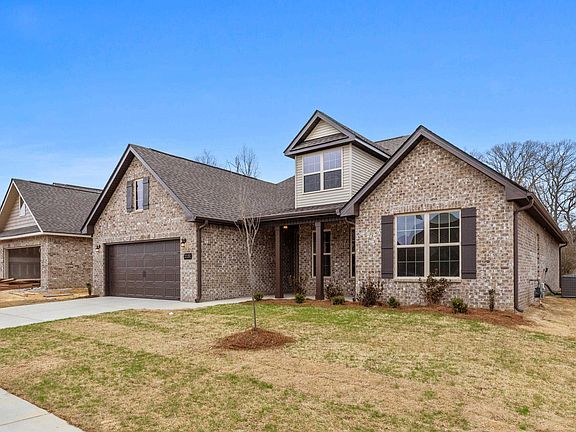 Move-In Ready! Discover the Rockford A floor plan in this charming home featuring 4 bedrooms, including a versatile bonus room upstairs, or 3 bedrooms plus the bonus space. A dedicated office downstairs adds flexibility. With 3.5 baths, the home showcases granite countertops, a gas range, and extra storage under the kitchen island. The living area includes a gas brick fireplace with a raised hearth. The master suite features a tile shower with a frameless door, a soaker tub with tile surround, and a double vanity. Enjoy luxury vinyl plank flooring in main areas, hardwood stair treads, recessed lighting, and ceiling fans. Outside, a front porch and large rear patio overlook serene woods. Additional perks include gutters, screens, a community pond, street lights, sidewalks, and Cullman City Schools.