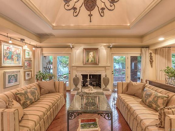 Extensive remodel creates open entertaining spaces. Striking wood paneled office. A wall of windows leads to a covered patio to provide a shady outdoor space w/ water feature. The Chef kitchen includes a Viking Stove, copper apron sink & dual drawer DW.