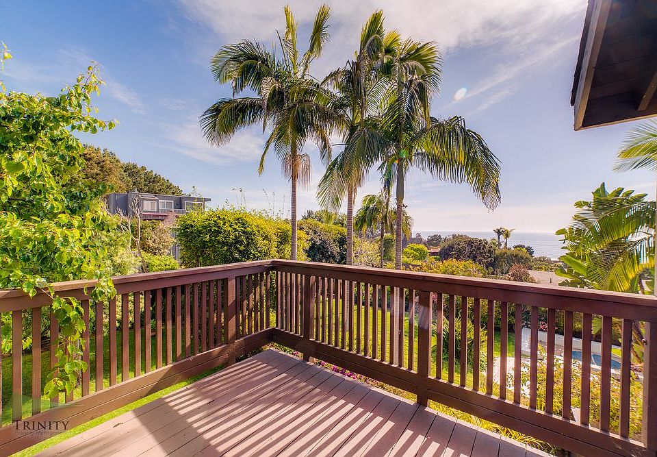 Classic gem tucked away in sought after Del Mar neighborhood with ocean views. Enjoy the expansive lush backyard and amazing views and sounds of palms blowing in the wind from the large decks. Minutes to gorgeous beaches of Del Mar, shopping, restaurants and schools. 2 car detached garage. Landscaping included. Three bedrooms with two and half baths. Upstairs master with spacious, upgraded bathroom. Ocean view living room with decks and bonus office space. Ground floor is highlighted by a spacious family room, kitchen, dining room that opens to backyard, two bedrooms and 1.5 baths.