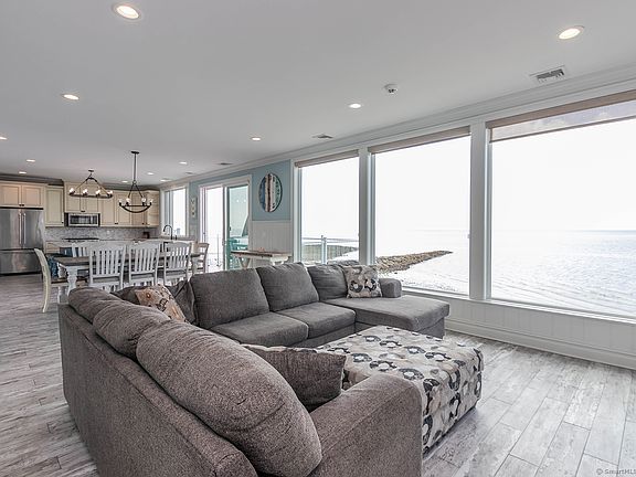 Indulge in breathtaking views stretching all the way to New York from this remarkable abode! Parking is never a concern with the expansive 6-car garage, ensuring ample space for guests. Crafted with meticulous attention to detail, this home is designed for serenity, leisure, and enjoyment under the sun or in the shade of charming covered umbrellas. Take your pick of decks - whether it's the terrace level with sand front, the second floor, or the top floor, each offering its unique ambiance. Inside, an airy open floor plan seamlessly connects the kitchen, dining, and living areas, all adorned with mesmerizing water vistas that are simply unparalleled. Nestled on Fairfield Beach Rd, this residence boasts the ultimate waterfront lifestyle. The second floor unveils a waterfront Primary Suite, complete with a luxurious spa-like master bath featuring a separate shower and indulgent soaking tub, along with a private office and two additional bedrooms serviced by a full bathroom. On the main level, discover a bedroom overlooking FBR, a convenient pantry closet, another full bathroom, and immaculate open living spaces. Ascend to the top floor to find a sun-drenched sundeck at the Southend of a vast bonus room, perfect for relaxation and recreation. Seize the opportunity to make 2131 Fairfield Beach your home, where luxury meets coastal living. House is furnished.