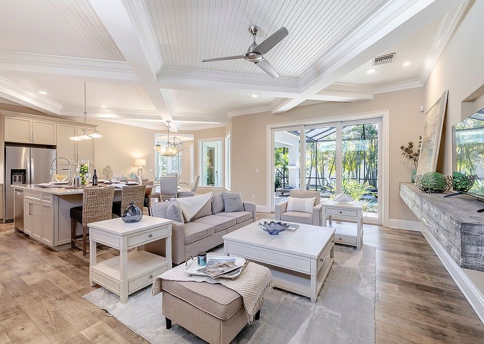 Welcome to your tropical escape — your private oasis of peace and comfort, perfect for a winter getaway. This fully upgraded 3BD/2.5BA home features spacious layout with a den and separate office/flex room, ideal for work or relaxation. Designed for indoor-outdoor living, the home features impact glass sliders opening to a screened,heated pool surrounded by tropical privacy. Enjoy elegant woodwork throughout,California closets, upgraded kitchen with large island and fenced yard. Furniture negotiable.Ideally located minutes from the beach, shops, dining, and golf.Sizes approx./subject to error.