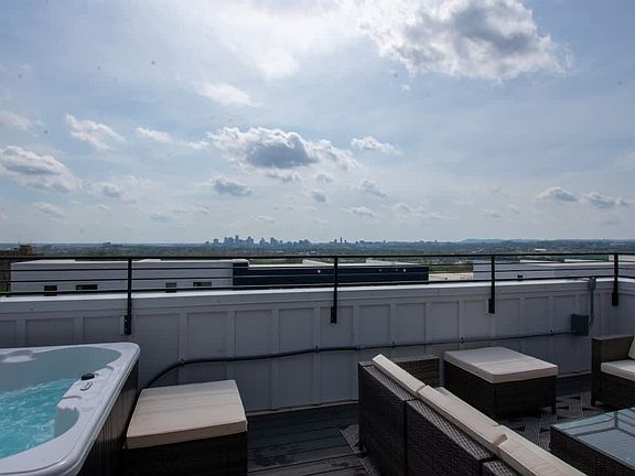 Feel at home in this brand new 4-bedroom house in Nashville, Tennessee, perfect for your next vacation or business trip. Enjoy skyline views with a rooftop hot tub, and the convenience of being about 20 minutes from Nashville's International Airport. The home offers easy access to all the Honky Tonks and hotspots downtown, allowing you to immerse yourself in the culture of Music City. This spacious home has everything you and your guests need for a spectacular trip to Music City. It includes 4 bedrooms with 10 beds, 4 bathrooms, a rooftop hot tub, a stocked kitchen, a spacious living room and kitchen, a washer and dryer, smart TVs, Wi-Fi, a 2-car garage, and a large rooftop patio with great views of the city skyline. Some amenities, such as a Pack 'n Play, are available upon request. Please let us know in advance if you need them. Located on the north side of Nashville, the home offers the convenience of Uber, Lyft, and other ride-sharing options, as well as a variety of scooters. Popular nearby destinations include Lower Broadway, Tootsie's Orchid Lounge, Luke's 32 Bridge, Ole Red, Casa Rosa, Jason Aldean's Kitchen + Rooftop Bar, Kid Rock's Big Honky Tonk Steakhouse, Bridgestone Arena, Nissan Stadium, The Ryman Auditorium, Assembly Food Hall, The Country Music Hall of Fame and Museum, The Johnny Cash Museum, The Music City Center, Ascend Amphitheater, and Tennessee Performing Arts Center. The elevators are non-operational for liability purposes. Guests are required to sign a rental agreement, and the minimum age to rent is 18 years old. Smoking and parties are not allowed.