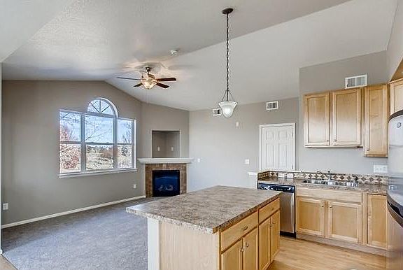 Beautiful Centerra townhome with 3 large bedrooms, a large walk in laundry room with a newer washer and dryer, several large closets including a walk in closet in the master bathroom. The main living space has a gas fireplace, vaulted ceilings and large arched windows with lots of extra light. The kitchen has new stainless steel appliances and looks into the large living space. There is a lovely large deck off the top floor that faces West as well as a large fenced main level yard with grass and landscaping. The unit also comes with an oversized garage. The unit borders a large grassy HOA area. One year lease. Lease includes water. Small additional charge for each dog. ( sorry, no cats allowed) Electricity and gas run about $55-65 a month which is paid by the tenant.
