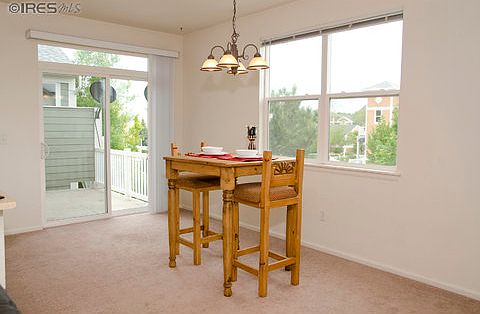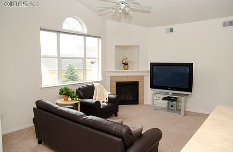 Fantastic upper level condo! Spacious layout with 3 bedrooms and 2 full bathrooms located in beautiful High Plains Village at Centerra. Complete with vaulted ceilings, large dining area, gas fireplace and terrific kitchen with an island. Exterior includes a private upper level balcony and a fenced yard in the front. 1 car detached garage and easy access to picnic area!