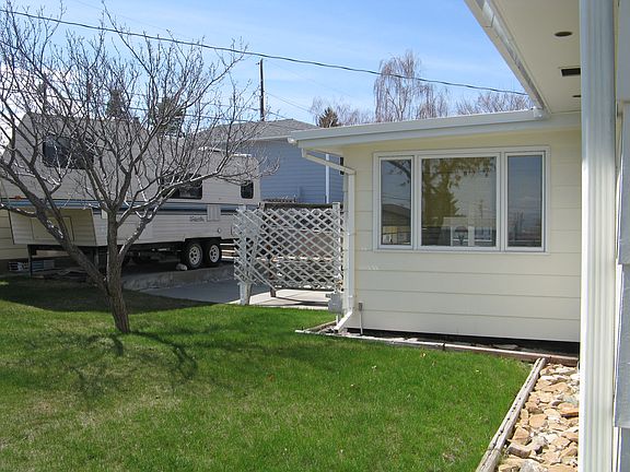 corner lot 2 blocks west of hospital. view of valley. easy access to interstate and shopping. Large corner lot. Detached dbl garage with barrel wood stove. Both front and back driveways long enough for RV and still have access to garages. Sprinkler system. Garden area just off back patio. Well insulated home. Forced gas heat with extra baseboard heat in living room. Basement has additional gas heater to just heat basement, plus a wood stove if you like the warmth from a fire. Extra room in basement for shop or storage. Sun room off dining room provides a warm area in the winter on those sunny days plus helps heat the rest of home and Also has it own baseboard heat. Kitchen has new dishwasher and microwave. Stove and frig are older but work great and are very clean. Close washer & dryer hookups in basement utility room and also in attached single garage, so you can do laundry without having to use stairs to basement. Attached garage always stays above freezing and it could be vented with heat from house. Well maintained.