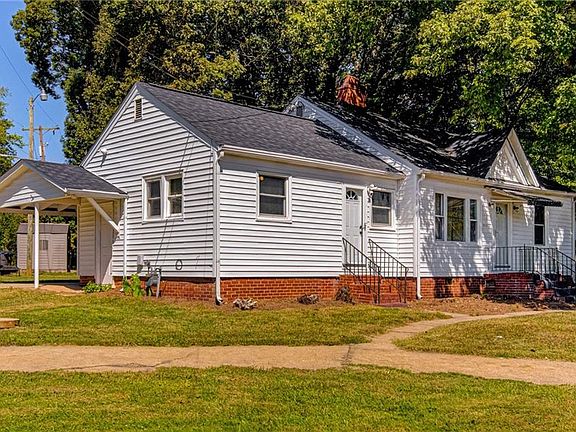 1950's ranch features 2 bedrooms, 1 bath; new roof April 2023; new gas furnace Fall 2022; new A/C Spring 2022; 1-car carport; nice level rear yard with deck and pergola. Refrigerator and storage building conveys; circular drive; ready for your personal touch!