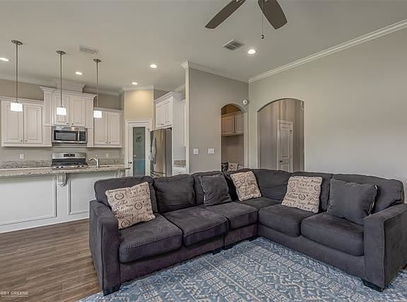 Well maintained home in South Shreveport with gray interior throughout, custom kitchen cabinets with stainless appliances, spacious living room with gas log fireplace. Master bedroom with large walk-in closet, separate stall shower, whirlpool tub and double vanities in the master bathroom. Huge fenced in backyard, and extra parking pad.