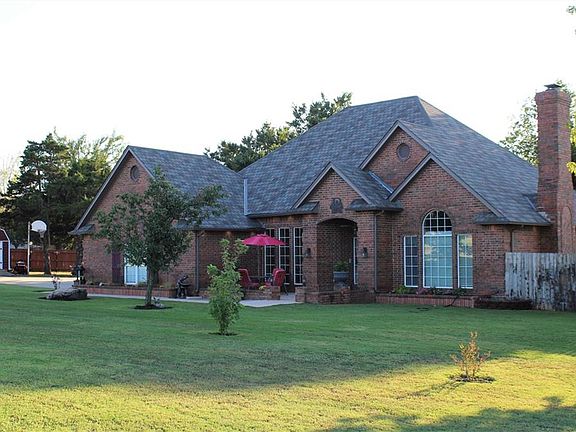 Ever dreamed of owning the whole block? This meticulously kept 3/2+bonus room boasts of country charm on 1.44 acres minutes from historic Guthrie. Front courtyard is a great place for having your dinner al fresco. The grand entry way is flanked by large wood columns & high ceilings. Formal dining has tray ceilings & tall windows. Relaxing living room features vaulted ceiling & cozy fire place. Newly remodeled kitchen has new countertops, backsplash, sink, plumbing, & cabinet hardware. Breakfast nook windows show the backyard landscape. The remodeled first bathroom has new countertop, backsplash, sinks, faucets, & tub with tiled surround. The in-room linen closet offers plenty of storage. The remodeled laundry room includes entry to oversized garage w/ custom paint, TV connection, & inground storm shelter. The 2 large bedrooms have generous closets. The spacious primary suite has decorative crystal ceiling fans, sitting room, & floor to ceiling windows w/ spa-like bath.