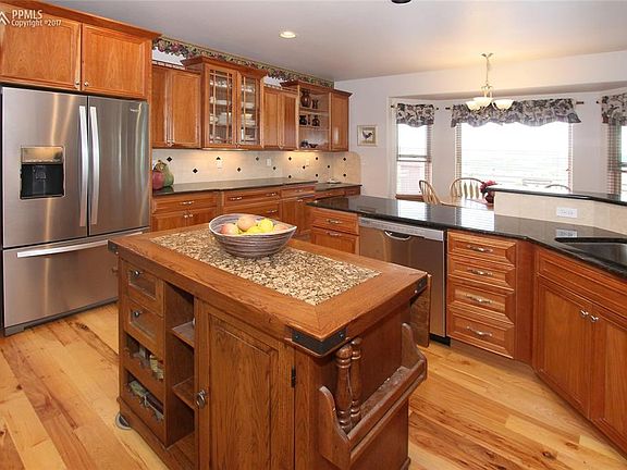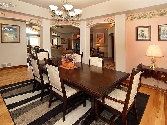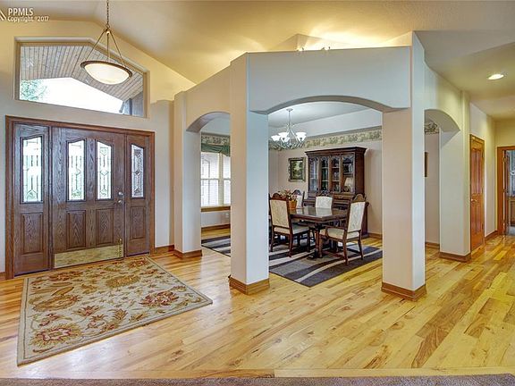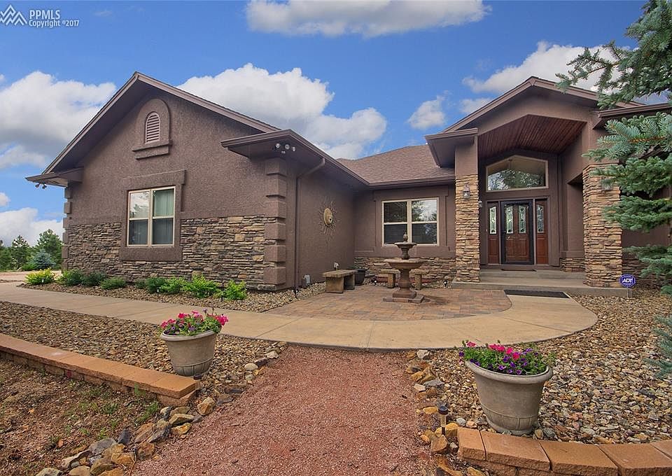 Executive feel with elegant appeal-360 degree views include Pikes Peak, Black Forest, Front Range & Golf Course Make this 10 room, 2.5 acre, 5,348 sq ft, custom Kings Deer home yours in one visit! Fabulous landscaping w/200 trees of varied species, irrigation for trees & shrubs, lovely hobby/exercise studio, 4/4/3 car + Class C RV garage - Lovely patio w/natural gas BBQ/fire pit/solar lighting + upper deck - Interior has vaulted ceilings, extensive granite, elegant hickory, cherry, oak woods - continued... Plenty of ambiance with 4 fireplaces, extended master bedroom suite, two wine coolers, office plus sun room, 2 x 6 construction - all new stucco on the exterior plus new stone work - 12 miles of walking/running/bicycling paths, fishing ponds, playgrounds & world class Kings's Deer golf course This estate is a nature-lovers retreat for those that appreciate serenity, privacy, elegance and supreme comfort- Easy drive to South & Metro Denver. Get ready for the WOW Factor!