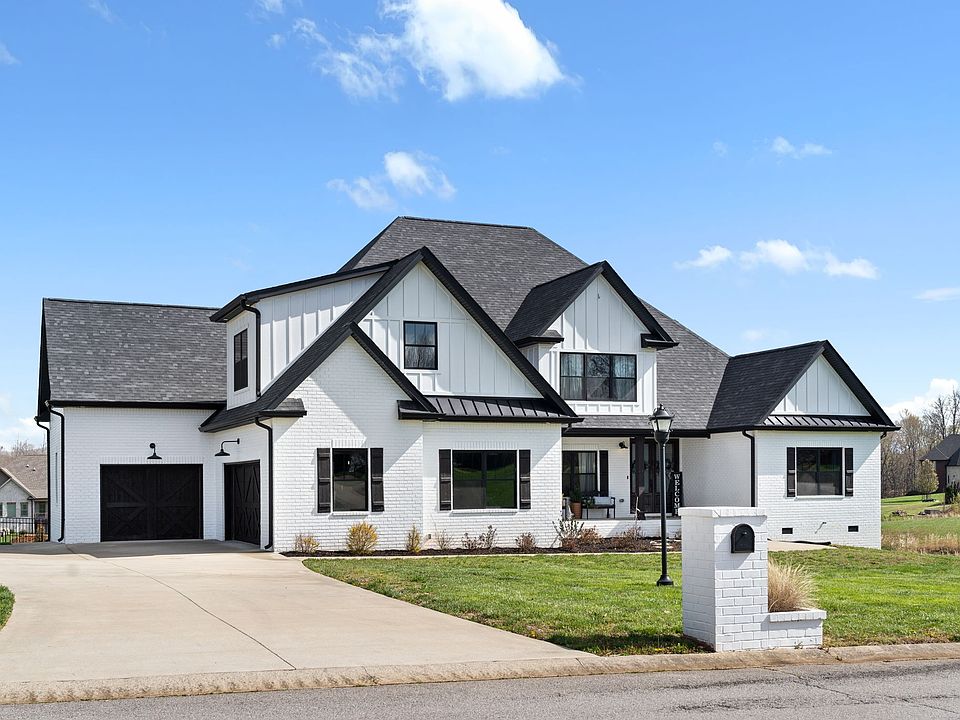 Enjoy luxury living is this chic custom build! Modern executive style home offers one level living with upper level guest quarters on sprawling 1.5acre lot. As you enter through the covered front porch your eye will be drawn to the soaring ceilings and great room with stone fireplace. Open floor-plan is perfect for entertaining. Main level offers 3-4 bedrooms, 2.5 bathrooms, office, eat in kitchen, and access to the covered back deck with two sided gas fireplace. The owner’s suite will make you feel like you’ve been transported to a high end Nashville hotel with the modern finishes, oversized tiled shower for two, stand alone bath, and two walk in closets. Upstairs you’ll find an open flex space, bonus room with wet bar, an addition bedroom w/full bath, and walk in finished storage room.