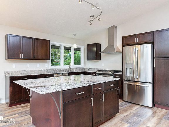 One of Anchorage's hidden gems! This quiet pocket cul-de-sac boasts breathtaking views of the mountains! Completely updated South-facing home includes Quartz Countertops, Cabinets, SS Appliances, LVT Flooring, Interior/Exterior Paint, and more. Also, His and Her Garages! Downstairs open recreation space offers variety of usage options: Game Room, Dance Floor, Pool Table??? 3BR/2BA Up, 1BR/1BA Down