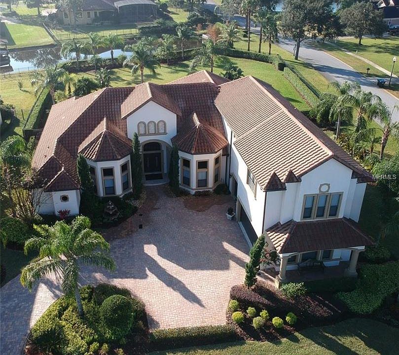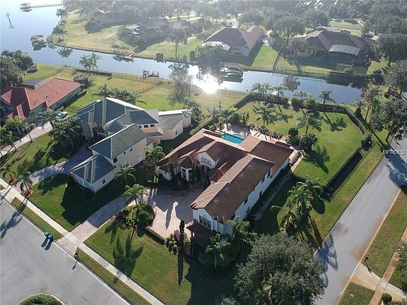 Exquisite waterfront home in gated Waterford Pointe with 5 bedrooms, 4.5 bathrooms, den, enormous bonus room, pool, spa, summer kitchen and dock all situated on 1 acre with over 100' feet of water access on Lake Roberts. Custom finishes abound with coffered ceilings in formal entry parlor and in the family room, art niches, travertine floors, built-ins, crown molding, wainscoting, surround sound and a gas fireplace, just to name a few. The gourmet kitchen has professional stainless appliances, double ovens, a gas cook top, granite counters, tile backsplash and an oversized center island and a surrounding bar that is ideal for both serving and seating. The spacious and private master suite features a his/her walk-in closets adjacent to the office and the pool bathroom making for a private master retreat from the rest of the home. The kitchen and keeping area is amazing - measuring approximately 33' x 33' with coffered ceilings, wainscoting and 24' of sliding corner glass doors opening to merge space with the covered lanai and summer kitchen featuring a refrigerator, gas grill, sink and tile backsplash. The enormous pool deck features a raised spa and large sunning area, oversized pool with views of Lake Roberts. The manicured landscape is a paradise with security fencing and hedging to provide a private yet open pool and lawn experience. There is a floating dock for jet ski and a permitted spot to build dock for a large boat. Home Warranty included.