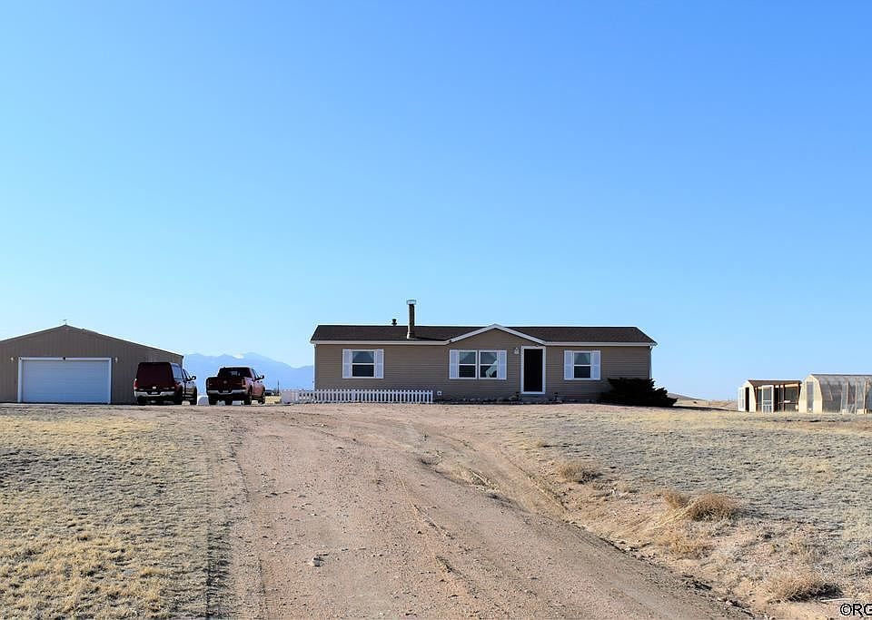 Great 5.4 acre property located less than 30 min commute to either Colorado Springs or Pueblo. *Horses are Allowed* This beautiful home has 3 bedrooms and 2 full bathrooms. Space for all your toys in the 29x31 oversized 2 car detached garage. Living room has a modern stone surround fire place, newer tile throughout kitchen & dining area. Each bedroom has large walk in closets. The large Master Bath features a garden tub. Open floor plan with AMAZING VIEWS OF PIKES PEAK AND BEYOND. The cutest play house that could also function as a chicken coop. Check out the Greenhouse and garden area. New hot water tank 2018, new furnace 2019. All new doors and LOW E windows with a lifetime warranty. Low maintenance yard and a cute little white picket fence along the walkway. Don't miss out on this one!
