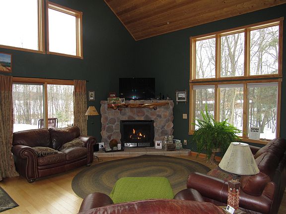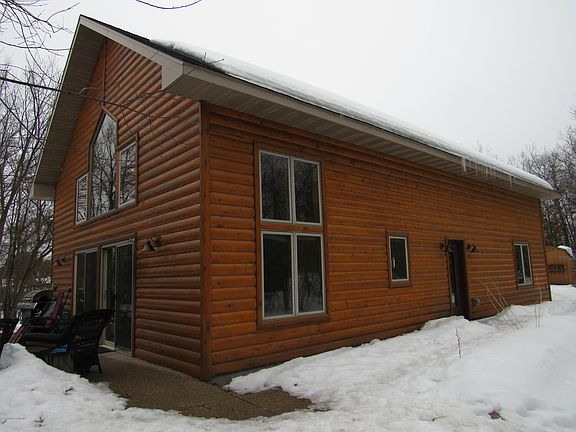 Peaceful and quiet, enjoy the privacy 2.56 acres on Shallow Lake has to offer. 3 bedroom, 2 bath Chalet Style 1/2 log sided home. Open floor plan, master suite, hickory cabinets, field stone fireplace, main floor laundry, in floor heat, exposed aggregate patio and sidewalk, rock retaining wall and storage shed. 190' natural shoreline, gradual elevation, great location between Nevis and Dorset, close to Heartland Trail. Most inside furnishings included.